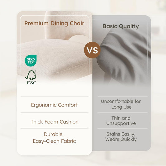 Dining Chairs Set of 2 – Modern Upholstered Kitchen Chairs (Sillas de Comedor) with Unique Cutout High Back & Wood Legs, Farmhouse Dinner Chair for Kitchen, Dining Room, or Living Room, Beige