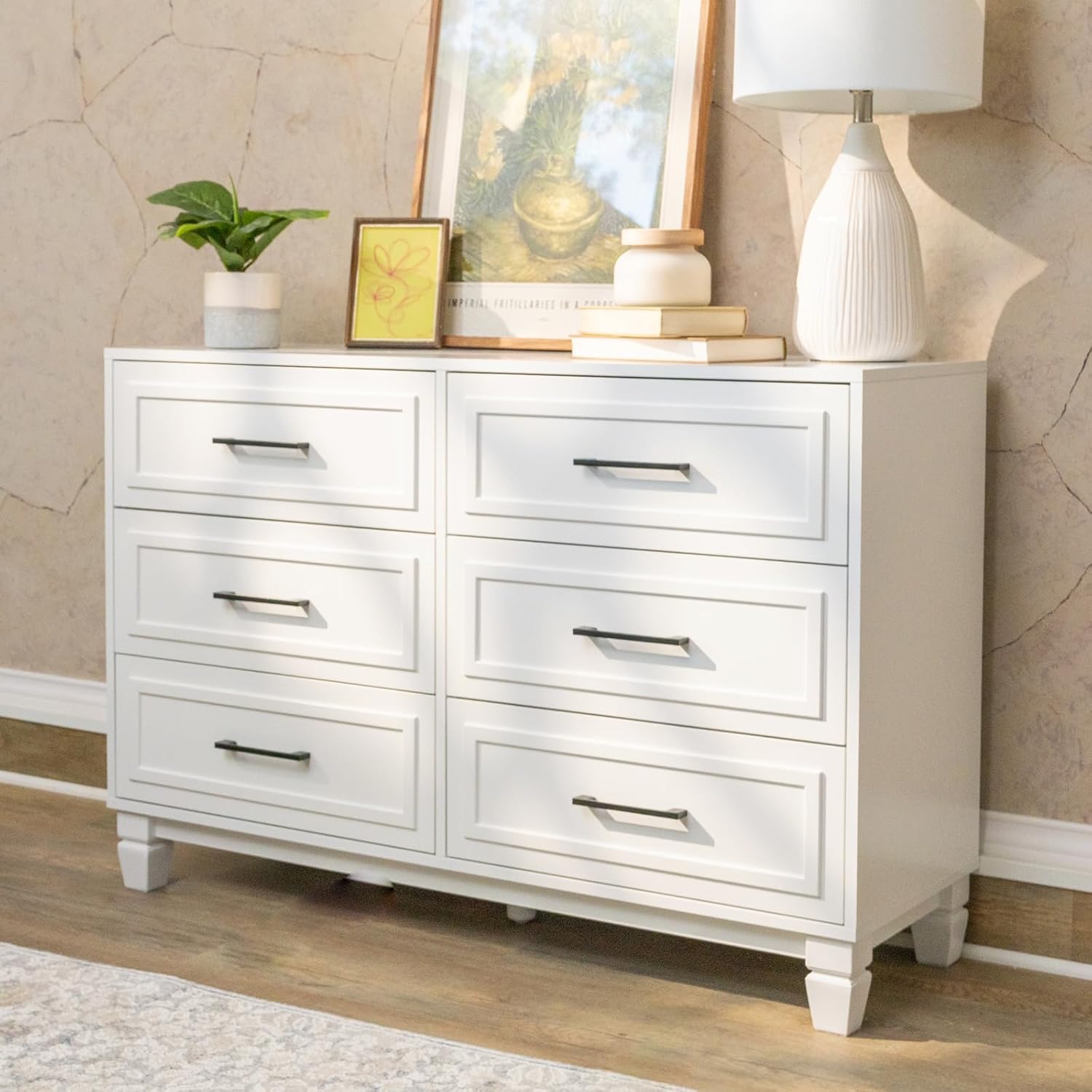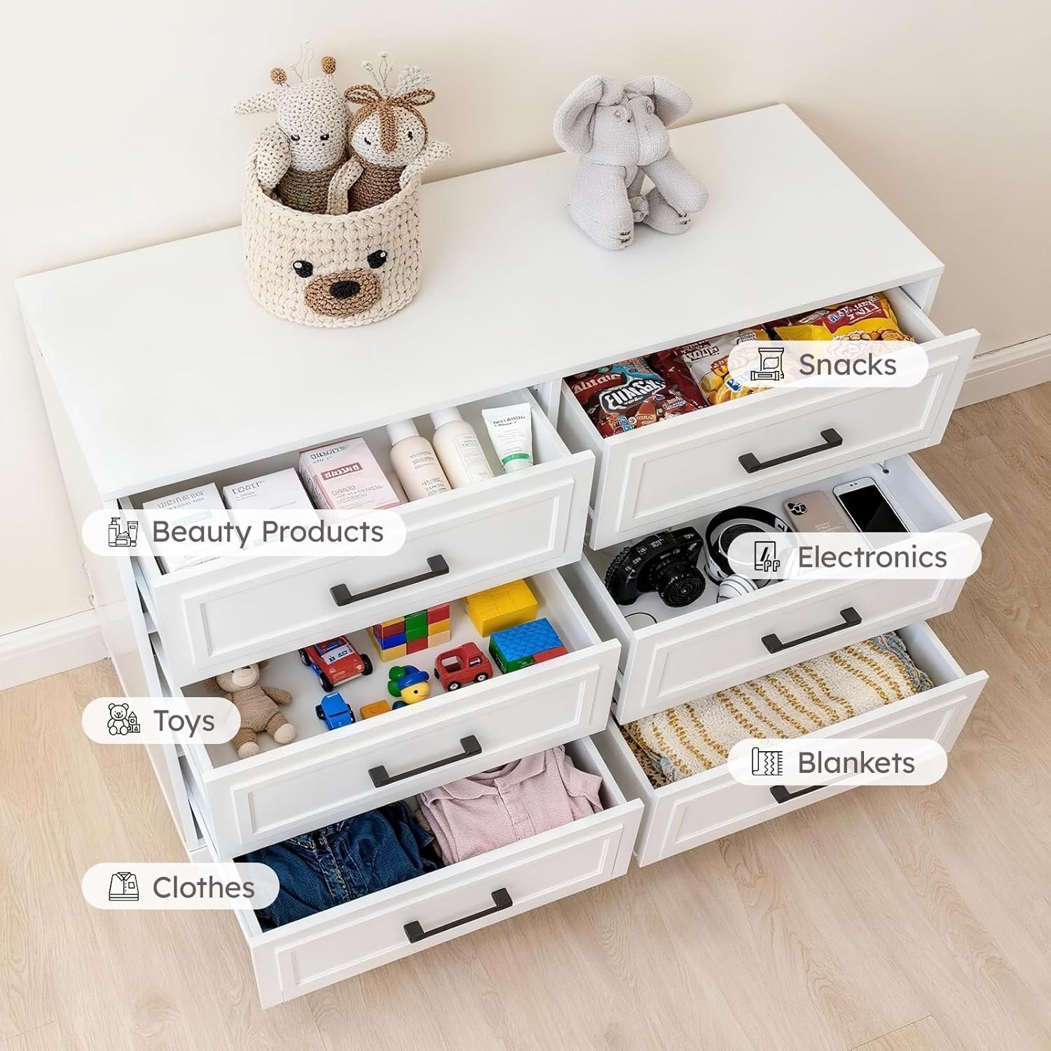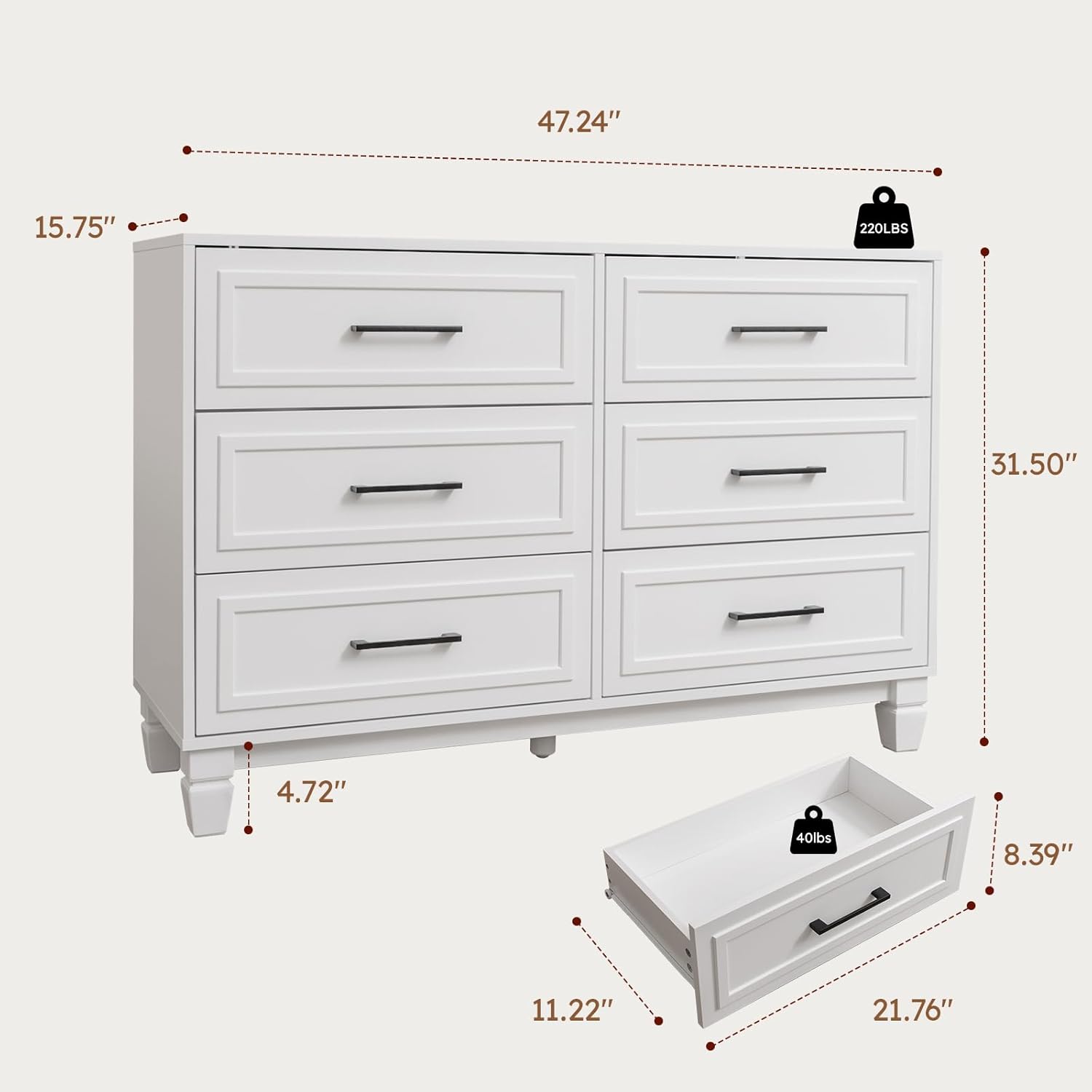 - SPACIOUS STORAGE SPACE: The bedroom dresser measures 15.8"D x 47.2"W x 31.5"H, comes with 6 large drawers to store and sort clothes/toys/blankets and other household items. This dresser organizer also works perfectly as a TV cabinet and can hold up to a 55-inch TV.