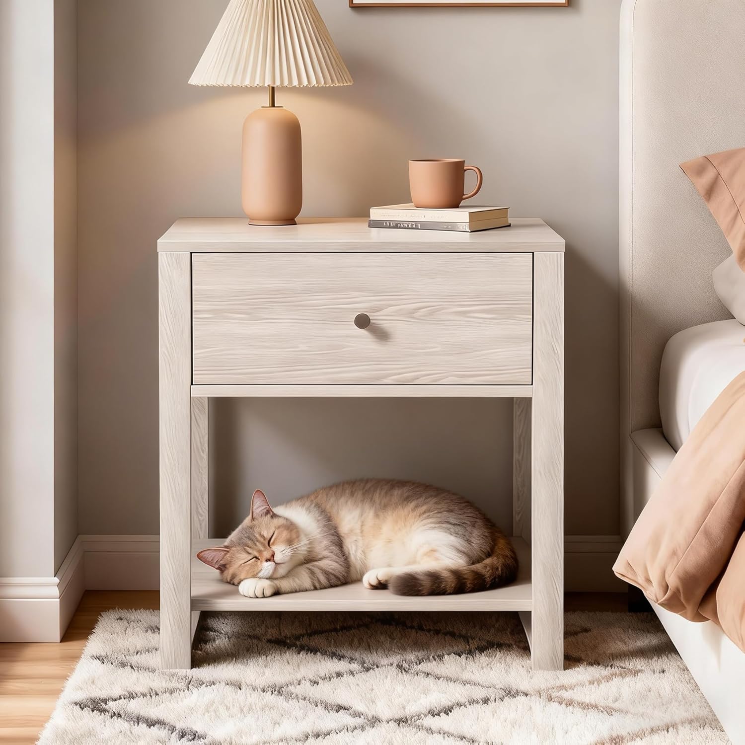 - 𝐀𝐦𝐩𝐥𝐞 𝐒𝐭𝐨𝐫𝐚𝐠𝐞 𝐒𝐩𝐚𝐜𝐞 --This White nightstand features a convenient drawer and a large bottom shelf, maximizing storage and making the most of your space. The tabletop is spacious enough for your daily essentials, books, or decor items. Dimensions: 20.87 × 15.75 × 23.62 inches (L×W×H). Perfect for Small Spaces.