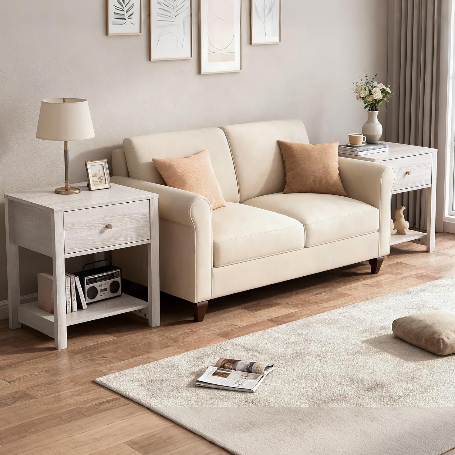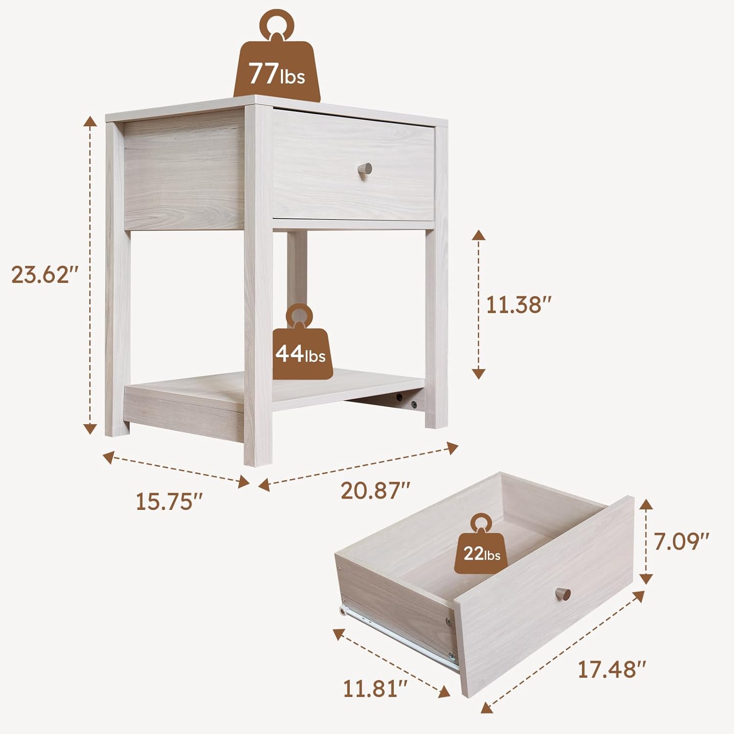 - 𝐀𝐦𝐩𝐥𝐞 𝐒𝐭𝐨𝐫𝐚𝐠𝐞 𝐒𝐩𝐚𝐜𝐞 -- This White nightstand features a convenient drawer and a large bottom shelf, maximizing storage and making the most of your space. The tabletop is spacious enough for your daily essentials, books, or decor items. Dimensions: 20.87 × 15.75 × 23.62 inches (L×W×H). the two-piece set allows for flexible placement and enhances the overall decor of your bedroom or living area.